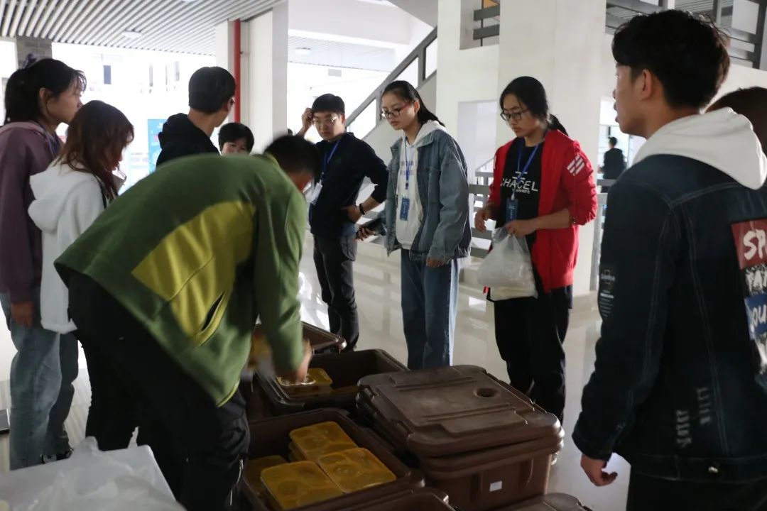 中午十二点整,志愿者们为各单位负责人们发放午饭。用餐结束后,志愿者们及时回收餐盒,并打扫用餐处的卫生,以便下午的工作能顺利进行。