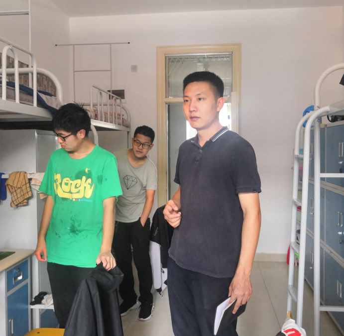 各年级于19周组织开展宿舍安全卫生大检查,对宿舍安全隐患进行排查。2016级辅导员王栋、2017级辅导员张雨明和2018级辅导员杨晓寒分别带队对本年级全部宿舍进行全面检查。