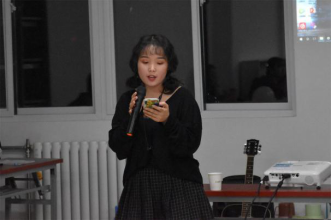 茶话会的最后一个环节“数字抱团”开始,同学们依次上台介绍自己,大家积极互动。数名同学演唱一小段自己的拿手曲目,现场掌声不断。最后,歌曲《平凡之路》的音乐响起,同学们打开手机手电筒,茶话会在点点光亮与优美的歌曲中落下帷幕。