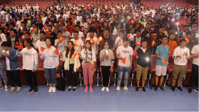 最后,正值祖国成立70周年,信控全体新生起立,手持国旗,共同合唱《我和我的祖国》,用歌声祝福伟大的祖国,愿祖国母亲在新时代更加繁荣富强!