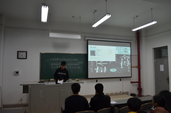 交流会开始,首先由张雨明为大家分享诗篇《潍县署中画竹呈年伯包大中丞括》,他用简明幽默的语言讲述了诗篇的创作故事,并借这首诗向大家提出做人廉洁的要求。随后大家依次分享自己的读书心得体会,自动化类1802班杨嘉乐为大家分享《白夜行》,他先讲述了喜欢这本书的原由并向大家展示了《白夜行》电影中的部分剧照,然后分享了自己的阅读感受。紧接着由自动化类1805班的仪博文对书本《舍得,舍不得》进行分享,他先为大家讲述书中部分令他记忆深刻的场景内容,又分享了书中许多人生道理。最后由自动化类1707班周一鑫带来了他分享的书《追风筝的人》,他为大家讲述了主人公阿米尔和哈桑之间的友情故事,告诉大家要珍惜自己的朋友,忠于自己的友谊。