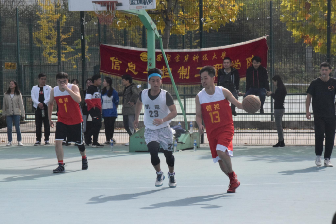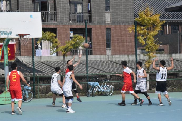 研究生篮球队和机电学院研究生篮球队及组织方裁判员共同参与比赛。