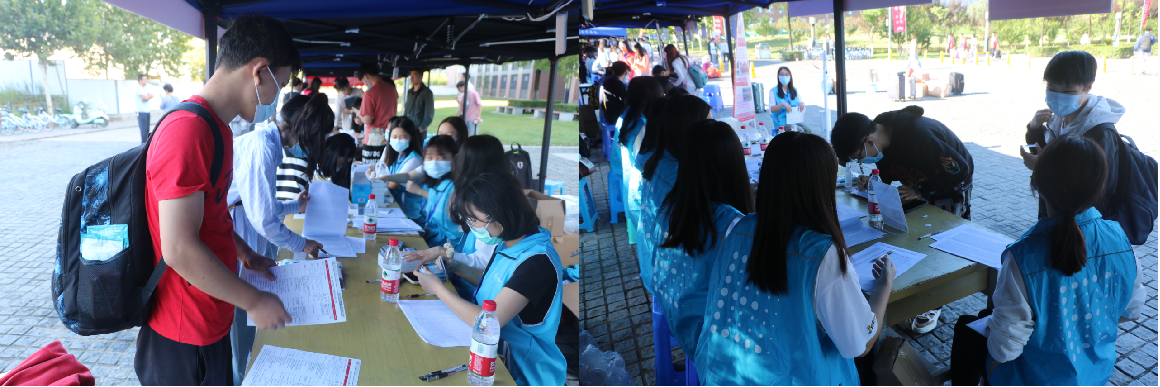 学院高度重视常态化疫情防控下的研究生迎新工作,精心组织、周密安排,坚持以学生为本,以“安全、简约、务实、周到”为原则,根据疫情防控需要,提前发放疫情防控物资。新生通过身份核验、扫码、测温后,在学院迎新点办理报到手续。本次迎新以“我为同学做件事”为重点任务,招募50余名志愿者,着装统一、精神振奋为新生搬运行李,指导学生入住宿舍办理手续。工作人员和志愿者们通力协作,认真做好迎新工作。