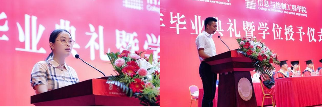 对毕业生的期望。优秀毕业生代表余静华和李尖回顾大学的美好时光,并表示未来都将以“信控人”的务实,脚踏实地;都将带着“建大人”的赤诚,乘风破浪;做德才兼备并用于创新的人、做富有责任并敢挑重担的人。