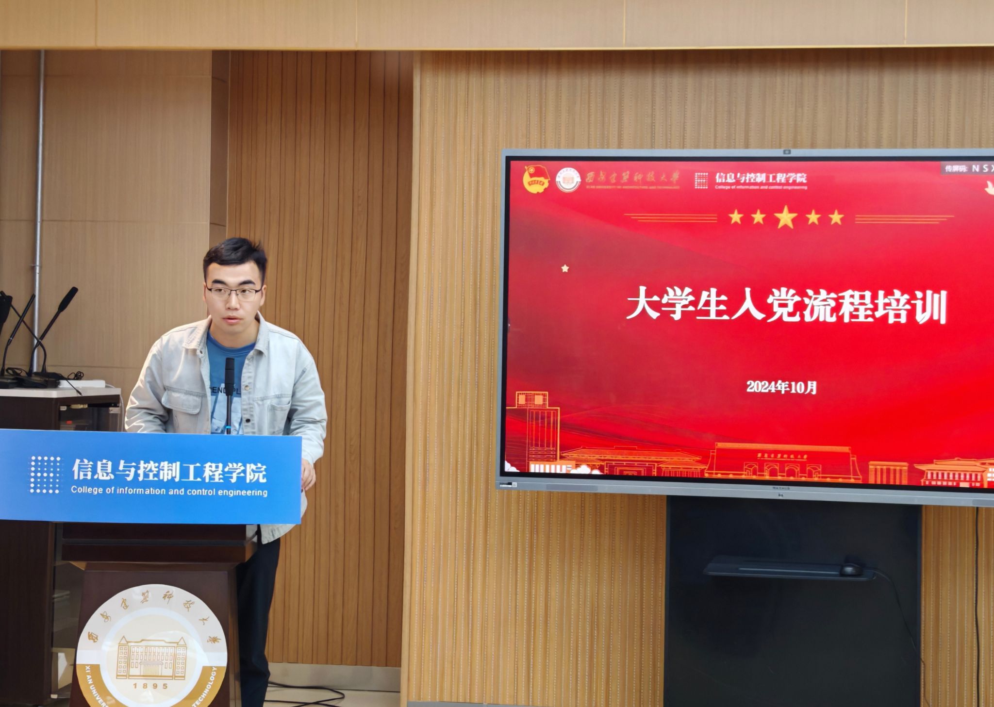 为落实新生入党、入团知识教育,解答同学们关于“推优入党”的疑惑,坚定大家向党组织靠拢的信心,李朝从入党初心、入党流程和党员标准三个方面展开培训。通过为什么入、怎样入、想成为怎样的学生党员这三个引发大家思考的问题,引导大家树立正确的入党初心,并讲解了大学生党员发展流程。谈到党员标准,李朝强调了党员不仅要有过硬的政治素质,更要在学风建设、创新创业和社会实践等各个方面发挥模范带头作用。