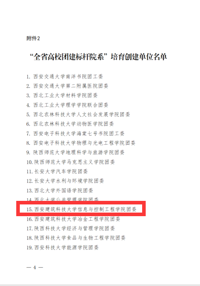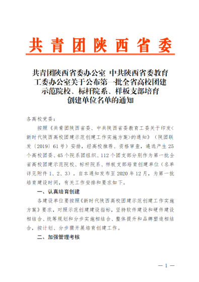 根据《共青团陕西省委办公室 中共陕西省委教育工委办公室关于第一批全省高校团建示范院校、标杆院系、样板支部培育创建单位名单的通知》,经高校推荐、资格审查、陕西省教育厅领导小组成员单位集中审议、结果公示,遴选产生了第一批全省团建工作示范高校、标杆院系、样板支部培育创建单位。其中,黑料不打烊