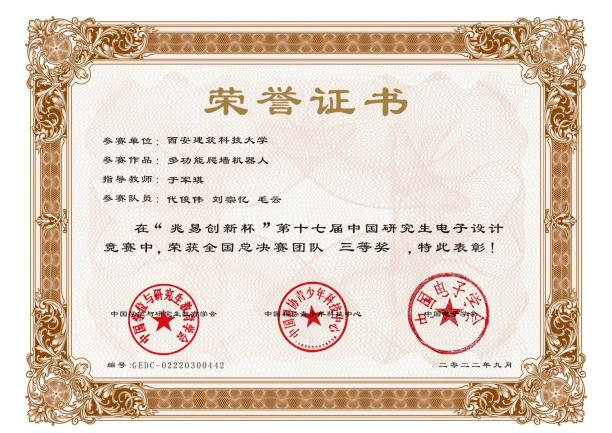 2022年8月,我校学子在第十七届中国研究生电子设计竞赛获得国家级三等奖1项。