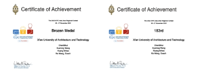 学子在第47届ICPI国际大学生程序设计竞赛亚洲区域赛济南站、南京站赛事中,分别取得了铜牌,是我校学生参加该项赛事以来的首次突破。国际大学生程序设计竞赛是由美国计算机协会(ACM)主办的年度竞赛,旨在展示大学生创新能力、团队精神和在压力下编写程序、分析和解决问题能力,是全球最具影响力的大学生程序设计竞赛,赛事由AWS、华为和Jetbrains赞助,在北京大学设有ICPC北京总部,用于组织东亚区域赛。