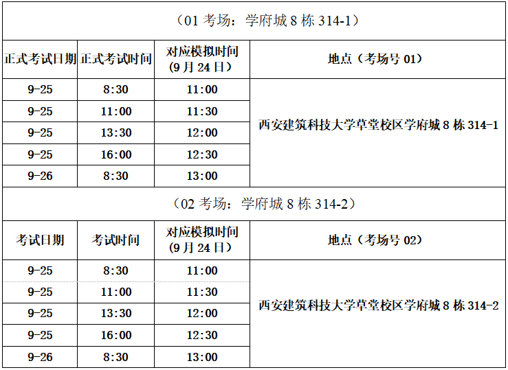 雁塔校区模拟考试具体安排