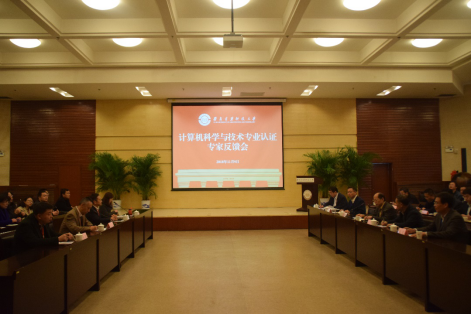 9日上午,各位专家在分别与学院和学科教学和管理人员进行完一对一访谈后,现场考查反馈会在工科大楼3楼报告厅举行。认证专家组简要回顾了现场考查内容,结合自评报告审核反馈意见和认证以来的改进情况,对计算机科学与技术专业所做工作给予了科学的评价和肯定,并就学生培养跟进、监督反馈机制等方面提出了细致、中肯的反馈意见。