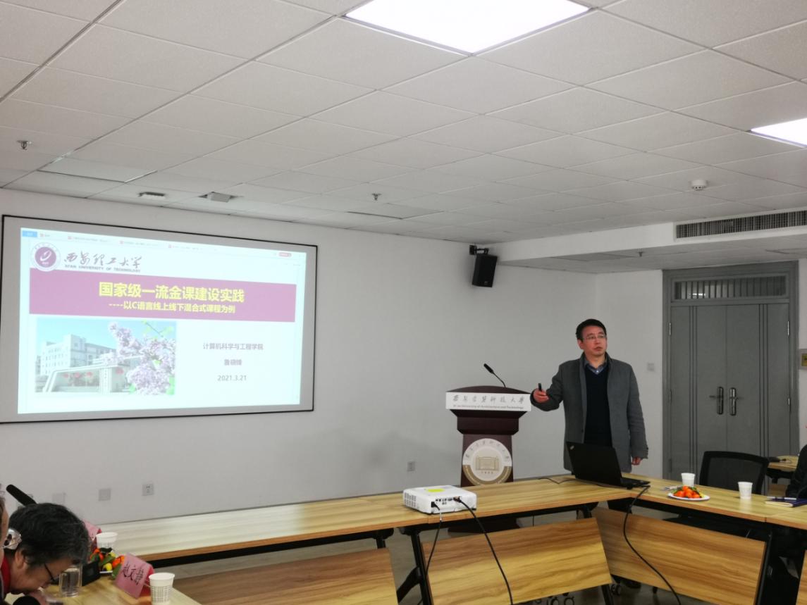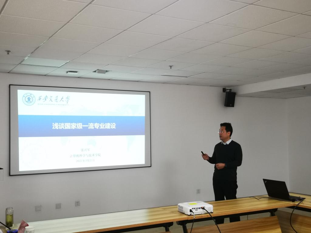 在工科楼713召开计算机科学与技术国家一流本科专业建设推进与研讨会。校党委副书记张志昌、教务处处长肖国庆、校教学督导组赵文静、王民、学院领导班子成员以及计算机系全体教师参会。会议特邀教育部计算机类教学指导委员会委员、西安交通大学计算机学院院长张兴军教授,教育部工程教育专业认证专家委员会委员、西安理工大学计算机学院副院长鲁晓峰教授参加并作报告。会议由黑料不打烊