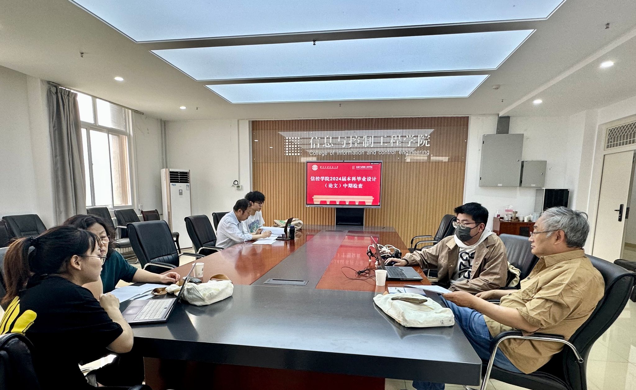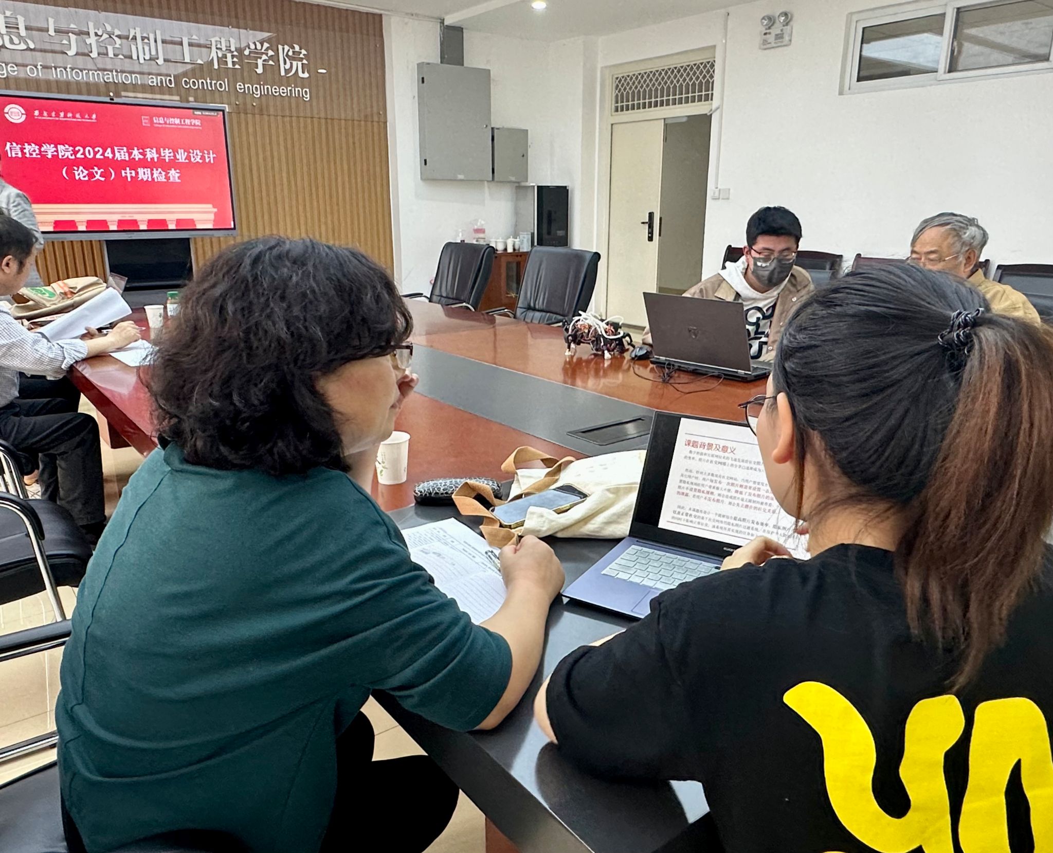 在此基础上,5月9日学院邀请督导组专家王民老师、贠卫国老师、董丽丽老师深入学院对2024届本科毕业设计(论文)进行集中抽查,本次集中抽查范围主要为本届优秀本科毕业设计(论文)培育项目及新任指导教师所带学生,共17名,分3组按照面谈质询方式进行检查,重点检查了学生毕业设计(论文)进度、质量,对毕业设计(论文)中发现的问题提出质询并给出了宝贵的建议。