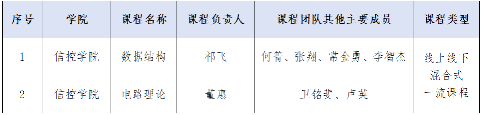 数据结构和电路理论两门课程获准第三批省级一流本科课程,课程类型为线上线下混合式一流课程。
