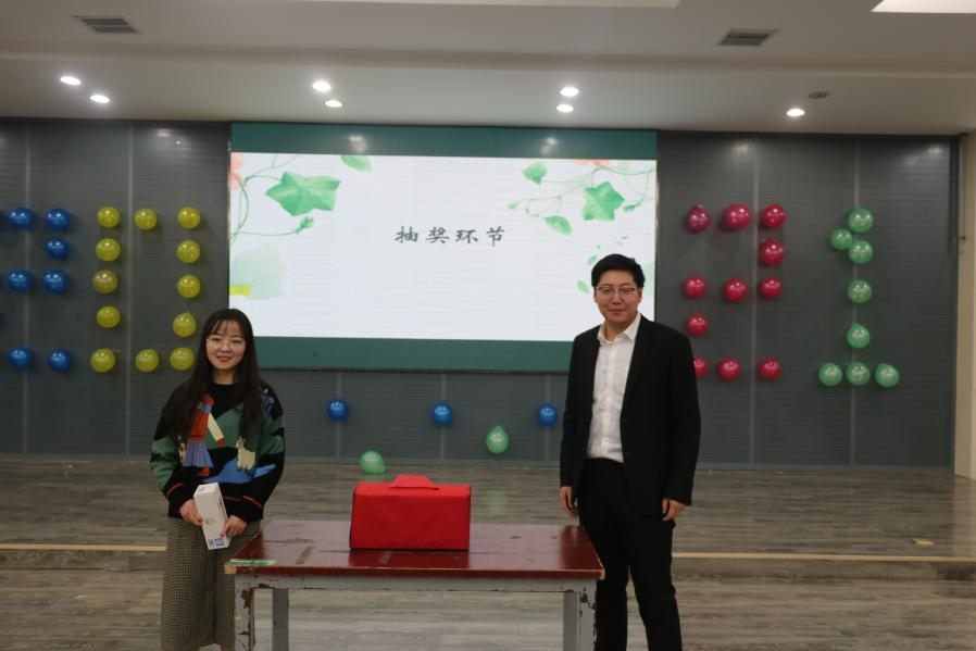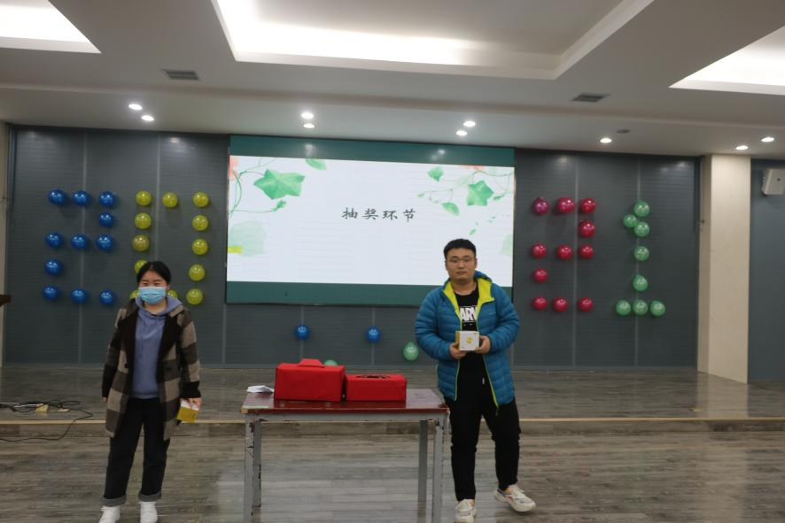 晚会进行的第一个游戏是你画我猜,游戏分为两组,每组四人,在三分钟内猜对词语最多的小组获胜。游戏开始,大家反应迅速,相互之间配合默契,形象生动的肢体动作,让人欢笑连连,最后,获胜的小组获得了小礼品,而失败的小组则接受了“黑暗”饮料的惩罚。