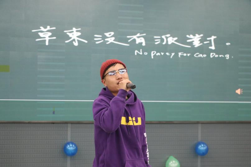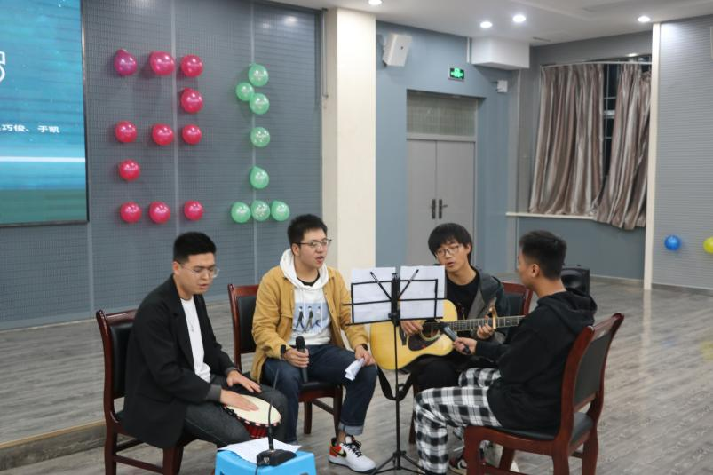 随后,梁昊然的一曲《山海》,唱出了同学们的摇滚情怀。王毅超、吴巧俊、于凯、崔智伟带来的吉他弹唱《童话镇Plus》,别样的编曲,为这首歌注入了新的活力。李佩晨的《七里香》、边宏亮和乔叶合唱的《说好不哭》,有一种抚慰人心的神奇力量,抚去一天的疲惫。纪思源的《dance monkey》,引得茶话会现场尖叫连连,崔智伟的《珍珠幻想》更是点燃了每个人身体里的说唱细胞,将晚会氛围推向了高潮。