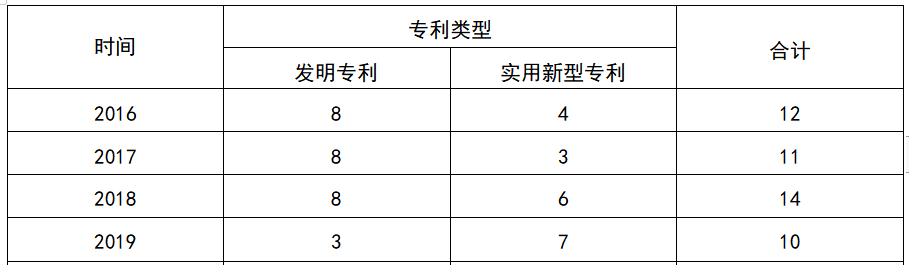 2016-2019年专利成果一览表