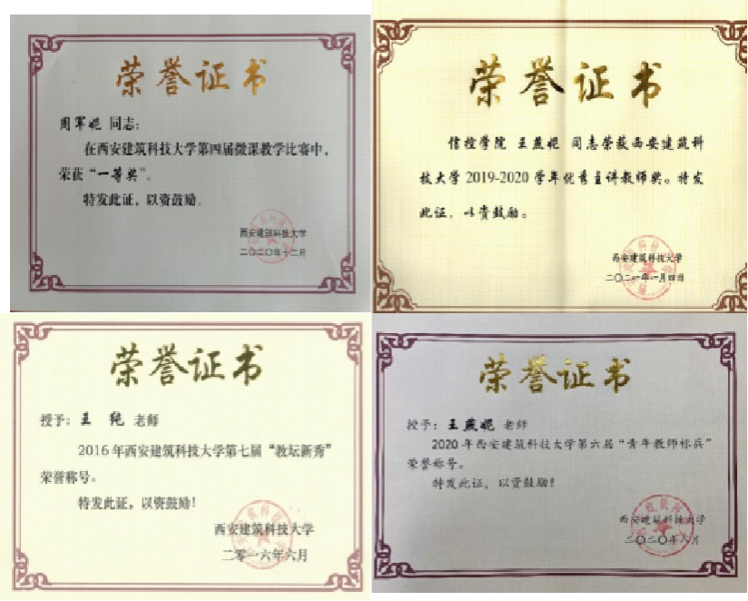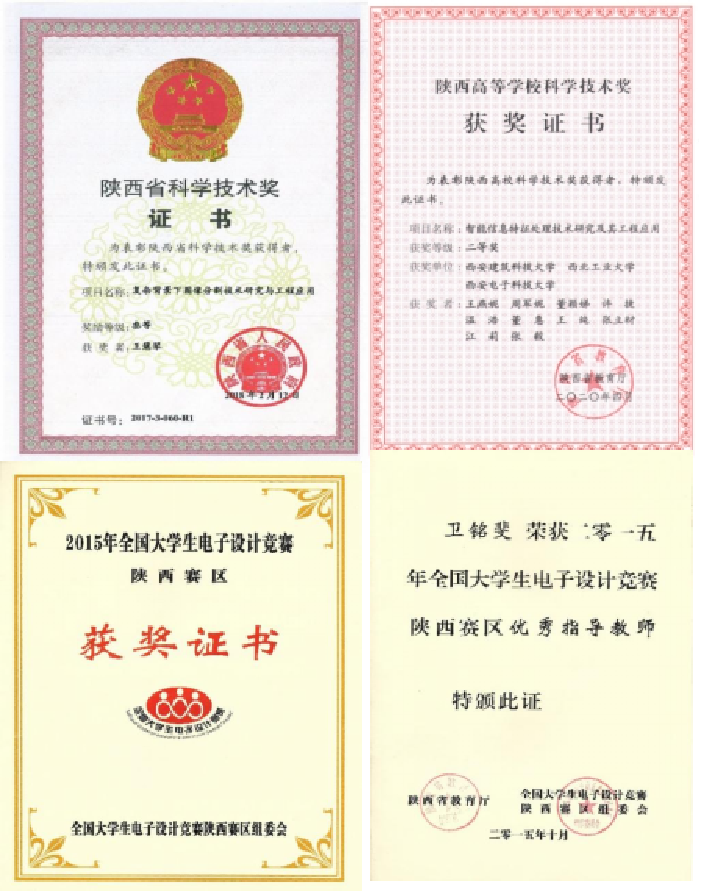 部分获奖证书